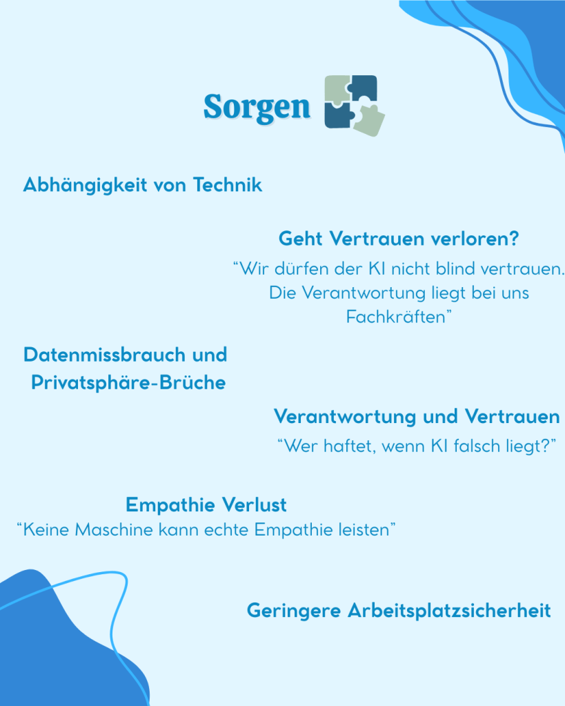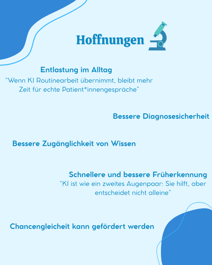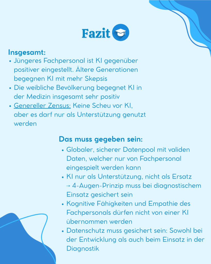 Uns war bewusst, dass wir als Soziologiestudentinnen keinen direkten Einfluss auf das aktuelle Gesundheitssystem nehmen können. Allerdings können wir in einem anderen wichtigen Bereich etwas bewegen: der Aufklärung. Und genau an dieser Stelle kommt auch die KI ins Spiel. KI wird bereits in unser alltägliches Leben integriert, und auch das Gesundheitswesen hat damit begonnen, KI-Systeme und Programme zu verwenden.