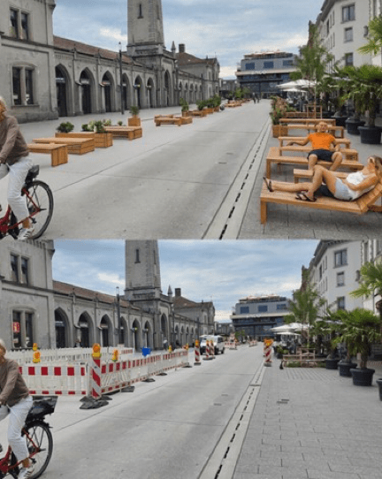 Sie haben Orte in Konstanz fotografiert, in denen sie Veränderungspotenzial gesehen haben. Diese Fotos wurden mit den jeweiligen Veränderungswünschen als Prompts bei ChatGPT-Plus hochgeladen und in neue Bilder umgewandelt. Beispielsweise wurde ein Sportplatz fotografiert, der im Sommer nahezu eine Sonnenstichgarantie bietet, und mithilfe von KI durch zusätzliche Begrünung deutlich schattiger wurde.